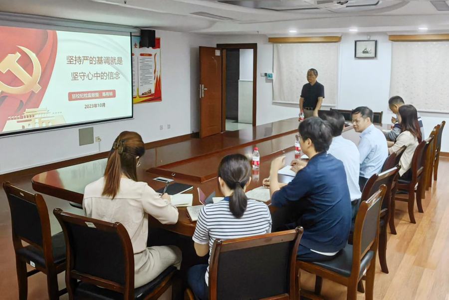 2023年10月27日下午,beats365亚洲版党支部在综合楼13楼会议室召开党支部大会,开展第一议题专题学习、“四讲四比”专项启动会及驻校纪检组陈有转副组长上党课等活动,会议由支部书记黄超主持。