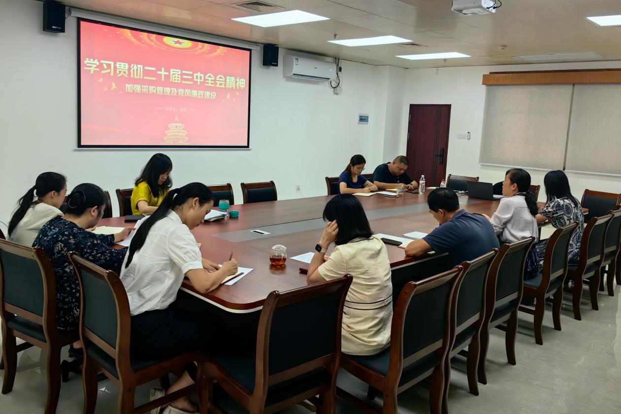 随后,徐红书记重点讲解了构建高水平社会主义市场经济体制和提高党对进一步全面深化改革、推进中国式现代化的领导水平的重要性。她结合支部的实际工作,从内控管理体系、筹建网上采购平台(乐采云)和“一院一品”廉洁文化品牌建设三个方面进行了深入探讨。